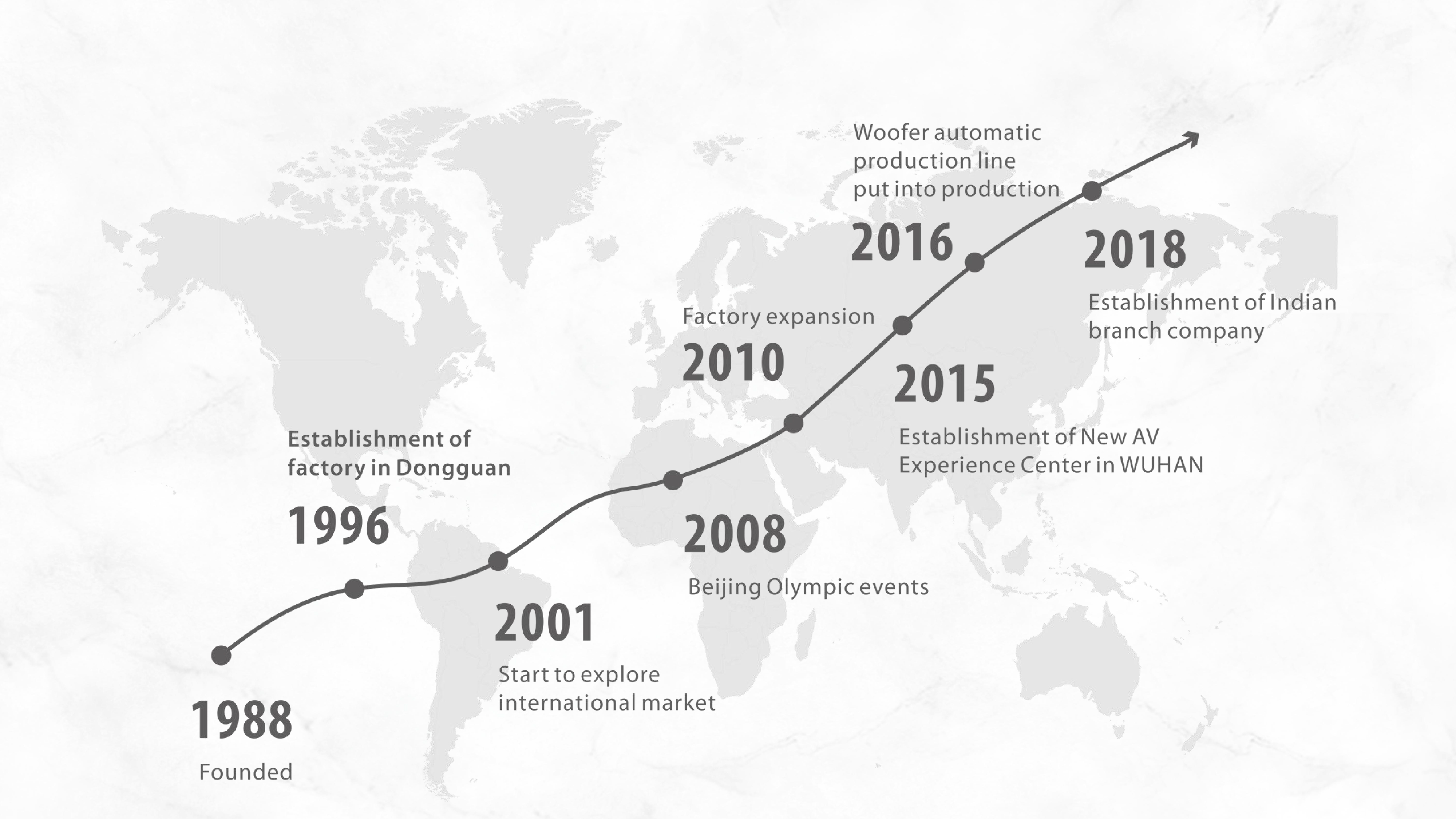 Благодаря 700 квалифицированным рабочим, двум четырехэтажным производственным заводам и 48 производственным линиям все наши деревянные динамики, профессиональные усилители мощности и электроника проектируются и производятся на нашем предприятии благодаря нашему глубокому опыту в области датчиков и электроники, накопленному за эти годы. Максимально увеличивая наши производственные возможности и мощности, уделяя первостепенное внимание качеству и постоянству, мы успешно предоставляем широкий спектр превосходных решений нашим клиентам по всему миру за последние 30 лет.