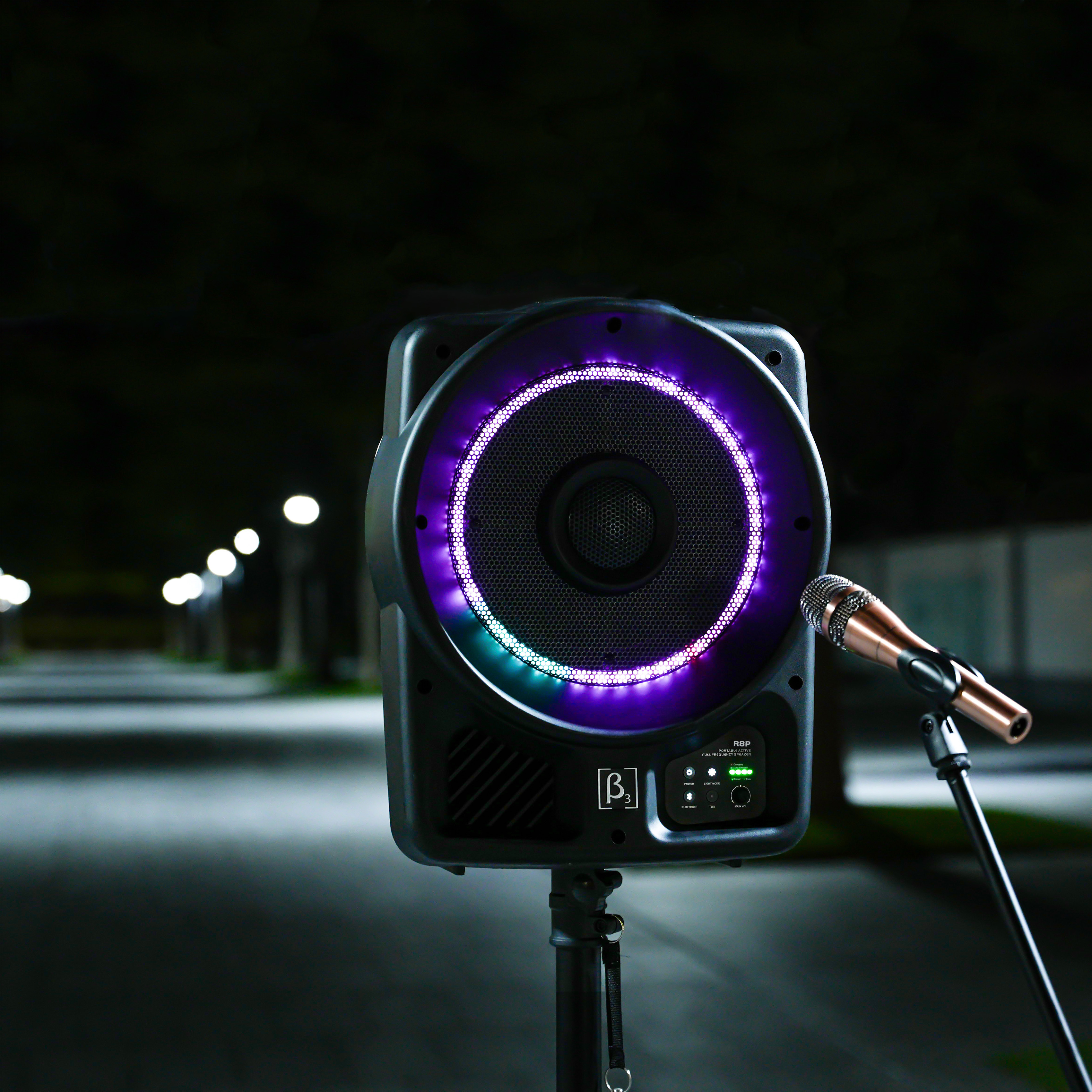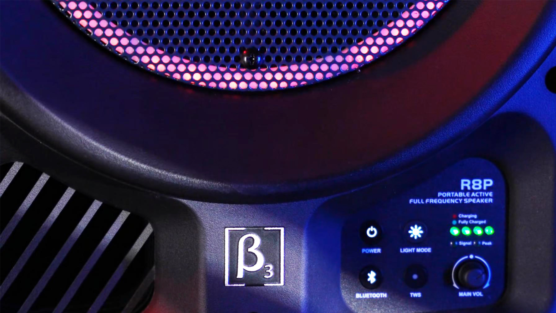 R8P весит всего около 8 кг — компактный и легкий, он обеспечивает четкий, мощный и точный звук для уличных выступлений, вечеринок, кемпингов и небольших сцен.